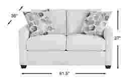Clean, confident lines with a delightfully understated style, the Caprice loveseat's casual warmth makes any room feel open and inviting. Featuring sloped wedge arms alongside reversible seat cushions, this piece is upholstered with soft chenille fabric. Cylindrical legs ground the loveseat with dark brown finish that compliments the upholstery's ivory color. The cheerful pattern on the fabric of the included toss pillows amp up the contemporary collection's playful style by highlighting the lighter tones of the color palette. Upholstery: 100% Polyester.