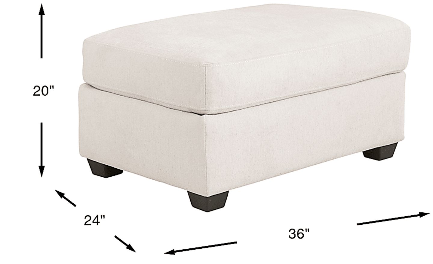 Clean, confident lines with a delightfully understated style, the Caprice ottoman's casual warmth makes any room feel open and inviting. Upholstered with soft ivory chenille, this piece features an irresistible ivory color. Cylindrical legs ground the ottoman with dark brown finish that compliments the upholstery's color. Perfect for your family's favorite room, use it in front of the coordinating sofa, loveseat or chair and put your feet up. Upholstery: 100% Polyester.