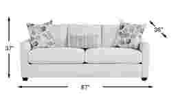 The Caprice Ivory Sofa measures 87" W x 36" D x 37" H. Its clean, confident lines, sloped wedge arms, and cylindrical legs contribute to a contemporary design that can help a smaller living room feel open and inviting. As a 3-seater sofa, it provides comfortable seating without overwhelming compact spaces, making it a suitable choice for urban apartment living or cozy dens.