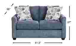 Clean, confident lines with a delightfully understated style, the Caprice loveseat's casual warmth makes any room feel open and inviting. Featuring sloped wedge arms alongside reversible seat cushions, this piece is upholstered with soft chenille fabric. Cylindrical legs ground the loveseat with dark brown finish that compliments the upholstery's navy color. The cheerful pattern on the fabric of the included toss pillows amp up the contemporary collection's playful style by balancing the darker tones of the color palette. Upholstery: 100% Polyester.