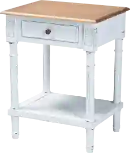 Add an element of vintage beauty to your space with the stunning Caracaly white end table. This French inspired piece is crafted from sturdy wood. The drawer offers convenient storage for household essentials while the woven rattan shelf serves a wonderful display area. The Caracaly is beautifully ornamented with floral carvings sure to catch attention. Ring-turned legs accentuate the dynamic geometry of the piece, making the Caracaly a fantastic addition to any layout. Customer assembly is required.