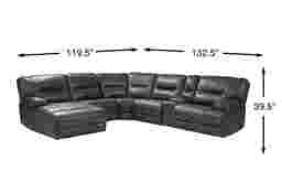 Designed for your comfort, the roomy Caranova sectional's transitional design suits a variety of styles. With room enough to seat up to five people, this piece has a place for everyone. It comes complete with two dual power recliners and a power reclining chaise, each allowing you to adjust your position with the touch of a button. A luxe combination of soft camel upholstery and pillowtop arms lets you sink into cozy comfort. The convenient lift-top storage console offers two cupholders to keep refreshments within reach. Upholstery: 100% Polyurethane