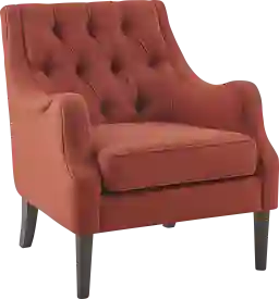 Elevate your living room with the vintage-inspired style of the Caravatta tufted accent chair. This accent chair is upholstered in a soft, rich fabric that features a button tufted back to create an elegant transitional look. The solid wood legs flaunt a dark coffee finish that complements the upholstery. With its soft removable seat cushion, this upholstered accent chair adds the perfect combination of comfort and style to your home decor. Customer assembly is required.