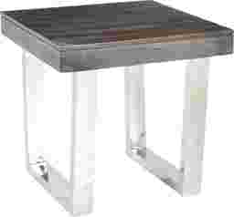 What a striking stage you will set with the addition of this stainless steel and Sheesham wood end table on either side of that special sofa, or paired with your favorite chair. Finished in a brown graywash to emphasis the natural beauty of the wood tones, a spectacular selection for a spectacular space! Some assembly required.