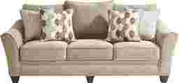 Prepare your living room with the classic and cozy Cardiff Court sofa. Upholstered in a soft fabric with a beautiful almond color that matches with many different room designs. This piece features stunning flared arms and welted seams giving it a clean, tailored appearance. Tapered legs in a dark finish complete the look of this stylish piece. This sofa pulls out to reveal a queen size gel foam mattress perfect for overnight guests. Upholstery: 100% Polyester