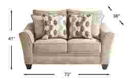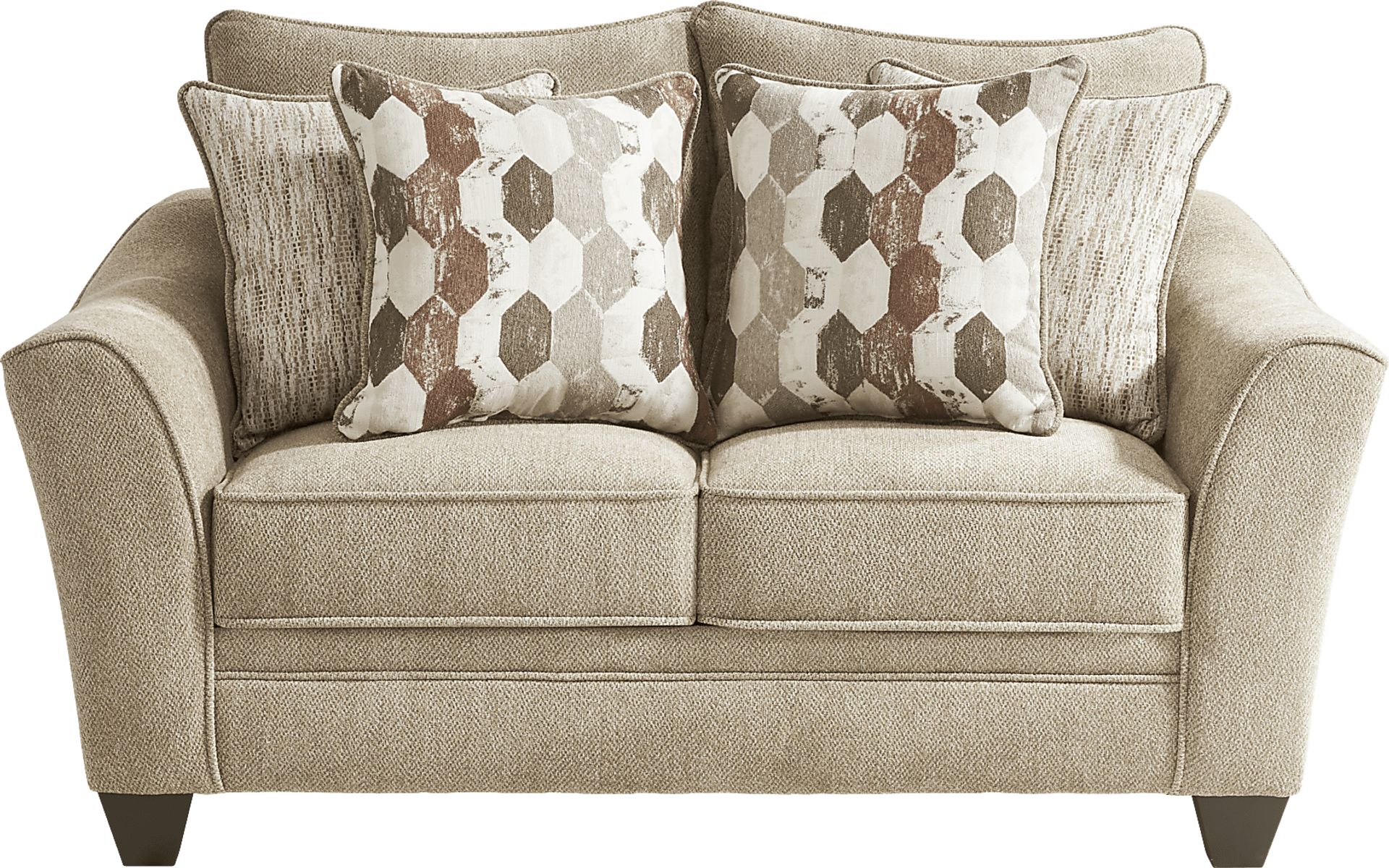 Get comfortable for your favorite show or a great book on the Cardiff Court loveseat. Perfect for two, this seating choice combines casual coziness with beautiful style. Welted seams and flared arms pair for a wonderful appearance that's highlighted by soft fabric upholstery in an almond color. Dark finish tapered legs are the perfect finishing touch for this loveseat. Upholstery: 100% Polyester