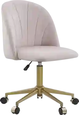 Shake things up in your home workspace with the chic Cardlow pink desk chair. Wrapped in soft velvet upholstery, this piece is as comfortable as it is eye-catching and easy to maintain. Its barrel-shaped back offers ergonomic support and features elegant channel stitching that adds depth and a subtle sophistication. Equipped with adjustable height settings and easy-rolling casters, this chair offers seamless mobility, while the sturdy steel base delivers lasting stability. The gold base boast a that pops amongst surrounding decor and fits seamlessly in a variety of settings. Customer assembly is required.