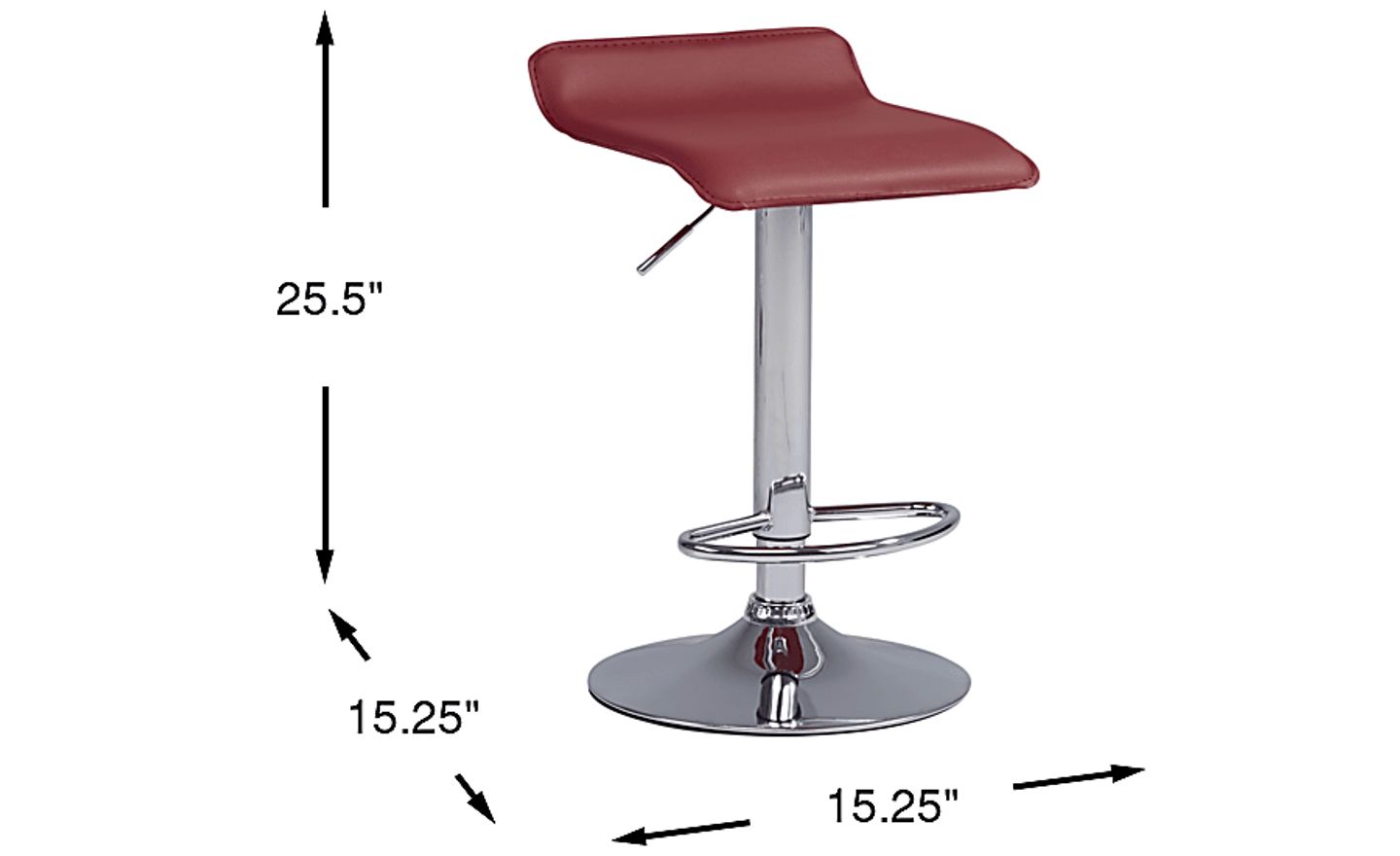 Contemporary style and comfort enhance your dining area with the Carey Hills red adjustable barstool. The backless design is sleek and modern which lends an attractive silhouette. The easy to clean UltraHyde upholstery is perfect when used on a regular basis. The lever activated stool features an adjustable height swivel gas-lift mechanism allowing you to raise and lower the seat from 23 inches to 33 inches from the floor. A chrome finished base offers support.