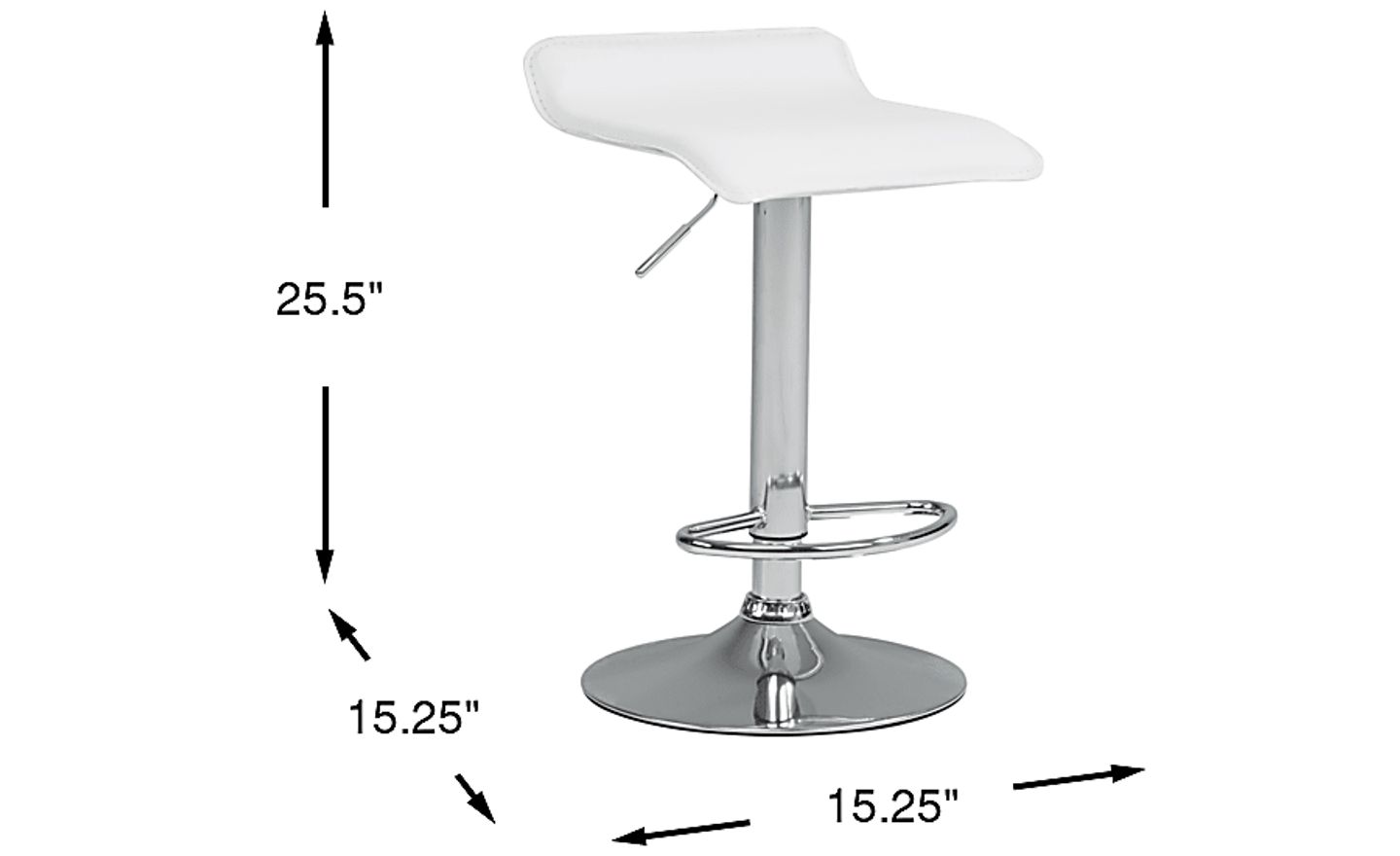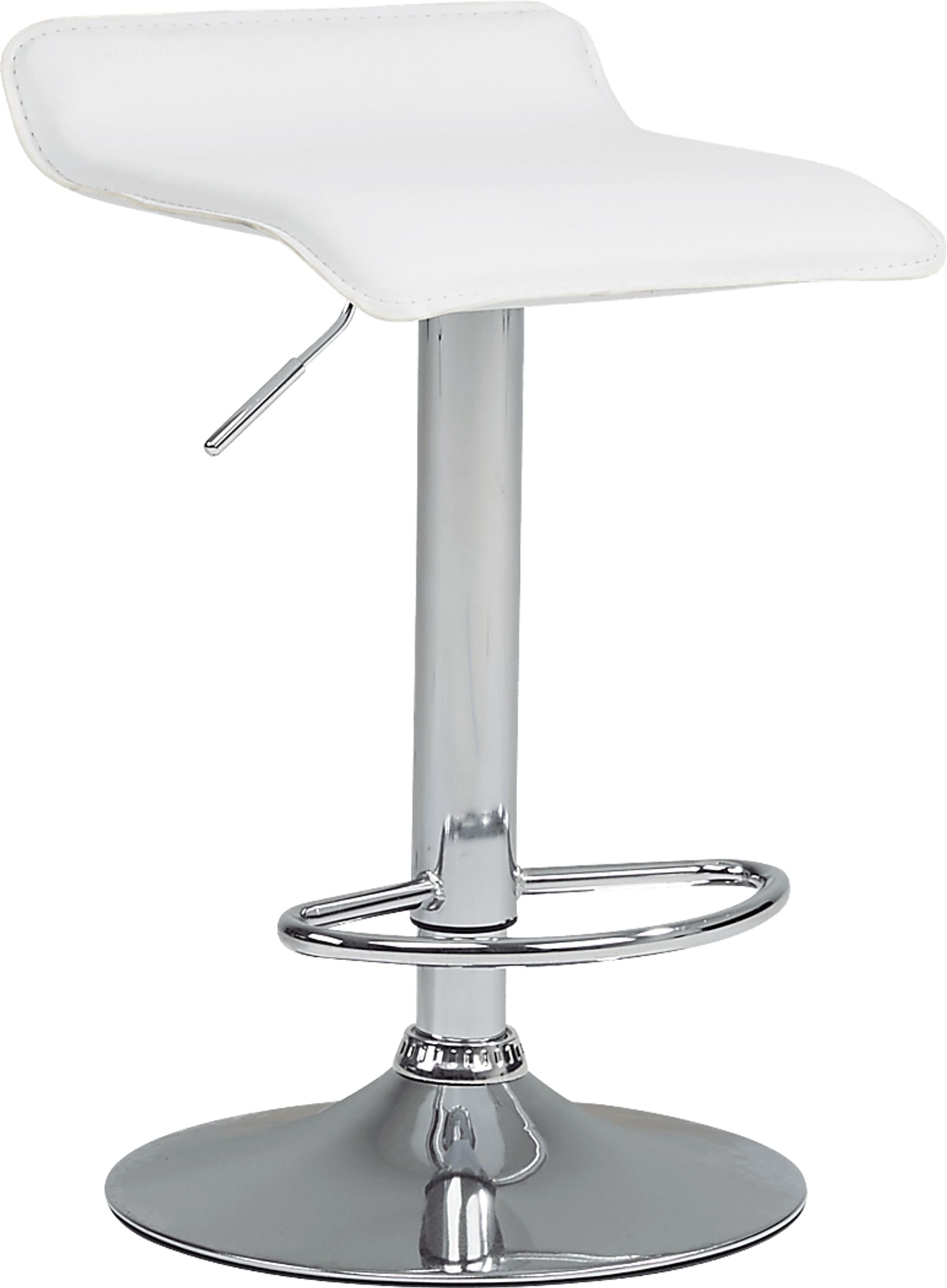 Contemporary style and comfort enhance your dining area with the Carey Hills white adjustable barstool. The backless design is sleek and modern which lends an attractive silhouette. The easy to clean UltraHyde upholstery is perfect when used on a regular basis. The lever activated stool features an adjustable height swivel gas-lift mechanism allowing you to raise and lower the seat from 23 inches to 33 inches from the floor. A chrome finished base offers support.