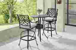 Carina Bronze 3 Pc 30 In. Round Bar Height Outdoor Dining Set With Sky Cushions