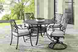 Durable, top quality outdoor dining set which was delivered and assembled by the most pleasant and knowledgeable deliverymen! Easily cleaned and moveable. Comfortable seating invites you to linger longer!