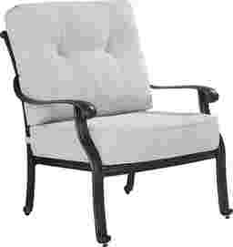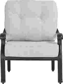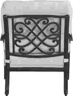 Cut loose, relax and revel with the whole crew in French Quarter style with the classic outdoor design of the Carina club chair from Cindy Crawford Home. Solid cast aluminum in a weather-resistant, hand-brushed bronze finish displays gorgeous intertwining patterns across each scrolled arm and intricate seat back. Durable and fade-resistant cushions in a sky blue outdoor fabric complete the look with comfort and lasting color.