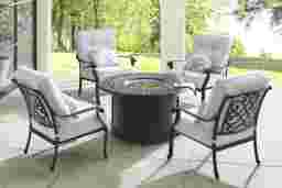 Carina Bronze 5 Pc Outdoor Fire Pit Seating Set With Sky Cushions