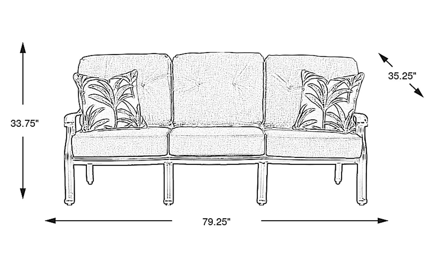 With a width of 79.25 inches, this sofa offers a generous three-person seating capacity without being over-scaled for most standard outdoor areas. Its 35.25-inch depth provides a deep, comfortable seat for relaxation while still allowing for functional foot traffic on a deck or patio. It is a versatile choice for those looking to create a primary conversation area in an urban or suburban outdoor setting.