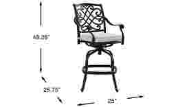 Because this stool is made of solid cast aluminum rather than hollow tubing, it offers a substantial and stable weight that is less likely to blow over in windy areas compared to lighter plastic or aluminum-frame alternatives. The broad 25-inch width and pedestal leg design provide a grounded, sturdy foundation that can withstand significant gusts on exposed decks or patios.