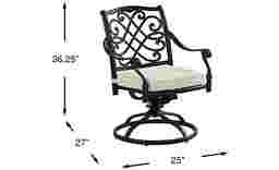 With its open-back scrollwork and streamlined track arms, this chair offers a sophisticated look that maintains a light visual footprint. Its 25-inch width makes it a practical choice for compact outdoor areas, while the swivel mechanism provides the necessary mobility to navigate tighter spaces without the need to push the chair base across your patio surface.