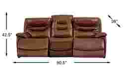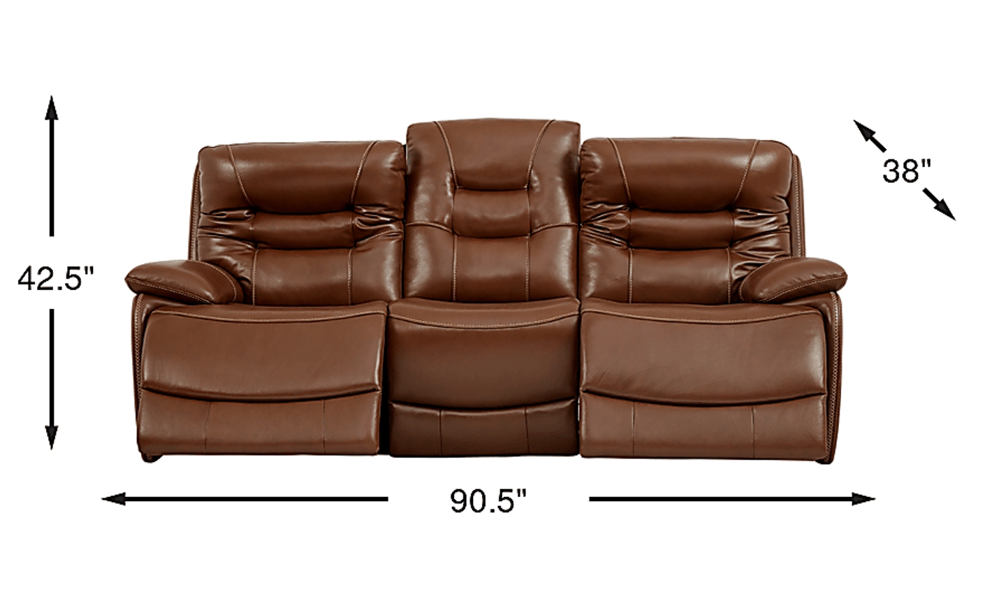 A timeless style and luxurious feel make the Carini sofa an excellent choice. Covered in supple brown top grain leather where the body touches, each attached cushion is highlighted with coordinating stitching; side tufting details on the base add additional eye appeal. A USB port on the side is an easy place to charge your devices. Shaped padded backs and dual power reclining footrests extend at the push of a button, providing unparalleled comfort that cradles the body from head to toe. Pillowtop padded arms contribute to even more comfort. Top Grain Leather Where the Body Touches and Vinyl Sides and Backs.