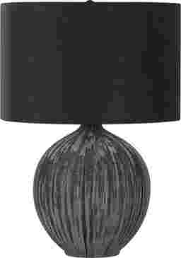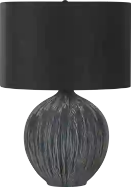 Add a touch of contemporary flair to any room with the stylish and trendy Carlisle Boulevard Black Lamp in an eye-catching textured finish, black ceramic base and a simple black fabric shade topped with a round black finial. This is the perfect sized lamp to add on top of an end or side table in a living room or home office or place it on a nightstand in your bedroom for a sophisticated look. Partial assembly may be required.