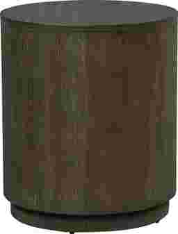 Moments become hours of relaxation that stretch into good times shared as the Carlowe end table's gentle lightness draws wandering eyes and elicits warm thoughts. Its cylindrical body rests on a plinth base in contemporary style. Oak veneers in a burnished golden finish tie the entire accent together with beautiful woodgrain details.