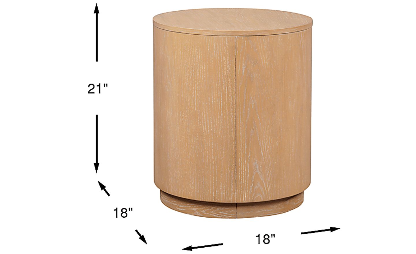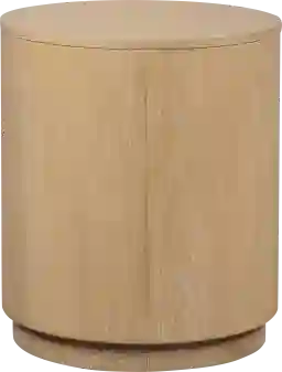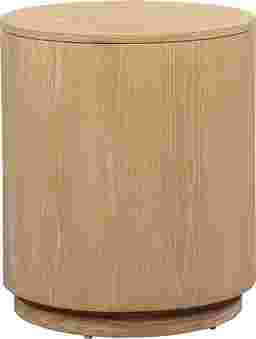 Moments become hours of relaxation that stretch into good times shared as the Carlowe end table's gentle lightness draws wandering eyes and elicits warm thoughts. Its cylindrical body rests on a plinth base in contemporary style. Oak veneers in a natural finish tie the entire accent together with beautiful woodgrain details.