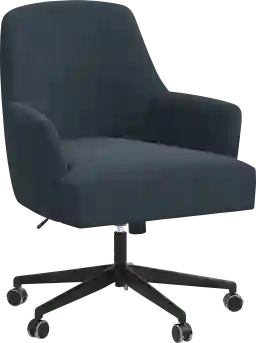 The soft curvature of the Carmelita swivel desk chair envelopes the back for incredible comfort. The sleek upholstery and stream-lined shape make it a versatile addition to any office space. It is both sturdy and cushy, with hand upholstered in linen fabric and a 360-degree swivel mechanism that adjusts for height and features metal casters for ease of movement. This piece is made to order and may take up to 6 weeks to deliver. Customer assembly is required.