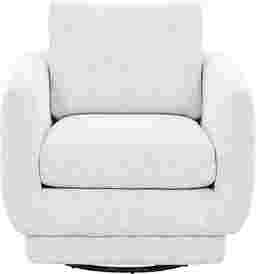 Putting a chic spin on signature living room style, the Carmen swivel chair brings contemporary character to your living space. Boasting a fashionable silhouette with sleek track arms, this inviting accent piece offers a relaxed place to unwind with a plush loose foam core seat cushion and smooth pivot swivel motion. Upholstered in woven fabric, the chair's white color is designed to add a distinctive accent to your room. Upholstery: 100% Polyester