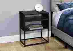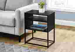 This Carmon Circle accent table triples your storage options. The rectangular tabletop and two fixed open shelves with different heights offer flexibility for placing items you want to display or keep close by. The three tiers and matching side panels in a black finish are supported by a sleek black metal frame for a modern, trendy look. Finished on all sides, it can be positioned in any direction to conveniently fit both narrow and wide spaces in living rooms or bedrooms. Customer assembly is required.