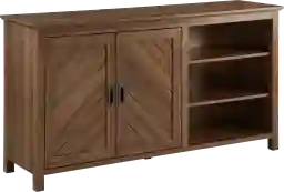 Is that a chic kitchen buffet? Or is it a stylish entryway credenza? Some even say it's a TV stand. No matter how you want to use your new Carnelian angled door sideboard it's sure to be a hit! Two grooved doors offer pretty, close storage capabilities while four adjustable shelves are yours to organize however you please. Cable management ports keep your electronics tidy and its warp-resistant core is made to last. Just picture this sideboard's eye-catching wood grain laminate finish; is that a furniture catalog or just your revamped living room? Keep your friend's guessing and your interior design looking great. Customer assembly is required.