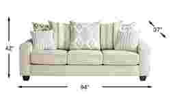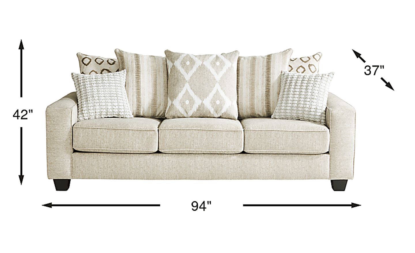 Offering stylish seating, the Carole Court sofa combines comfort and contemporary design. Upholstered in velvety smooth beige woven fabric, this tailored silhouette featuring welted reversible seat cushions and track arms offers a sleek aesthetic. A mix of patterned and solid pillows in coordinating shades of gray and white add a unique dimensional look. 100% Polyester