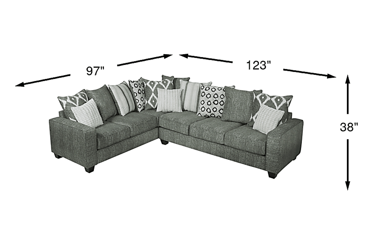 Offering stylish seating for six adults and the convenience of a pull out mattress, the Carole Court sleeper sectional combines cushioned comfort and contemporary good looks in one chic sectional. Upholstered in gray woven fabric, this sectional's crisply tailored silhouette, welted seat cushions and track arms offer a clean aesthetic. A mix of fashionable accent patterns rendered in coordinating shades of gray and white add to the stylish appeal. Tucked away is a comfortable Sealy Royale queen size mattress to accommodate overnight guests. Upholstery: 100% Polyester.