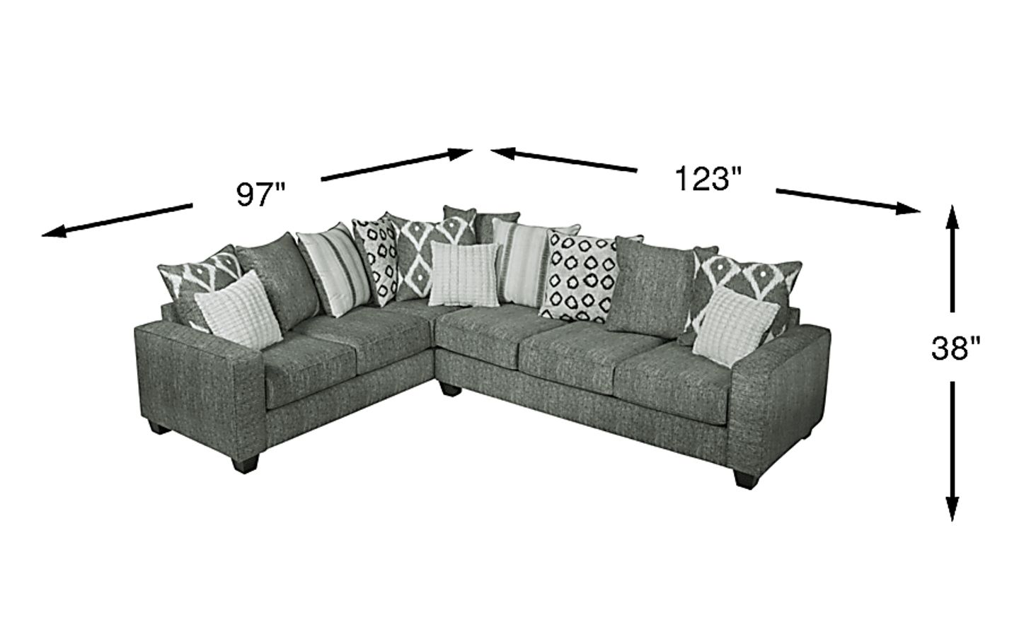 97"w"w x 123"d"d x 38"h"h