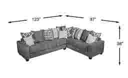 Offering stylish seating for six adults and the convenience of a pull out mattress, the Carole Court sleeper sectional combines cushioned comfort and contemporary good looks in one chic sectional. Upholstered in gray woven fabric, this sectional's crisply tailored silhouette, welted seat cushions and track arms offer a clean aesthetic. A mix of fashionable accent patterns rendered in coordinating shades of gray and white add to the stylish appeal. Tucked away is a comfortable Sealy Royale queen size mattress to accommodate overnight guests. Upholstery: 100% Polyester.