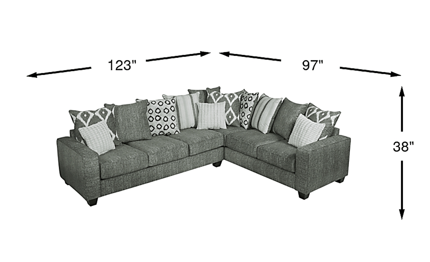 97"w"w x 123"d"d x 38"h"h
