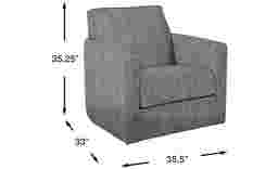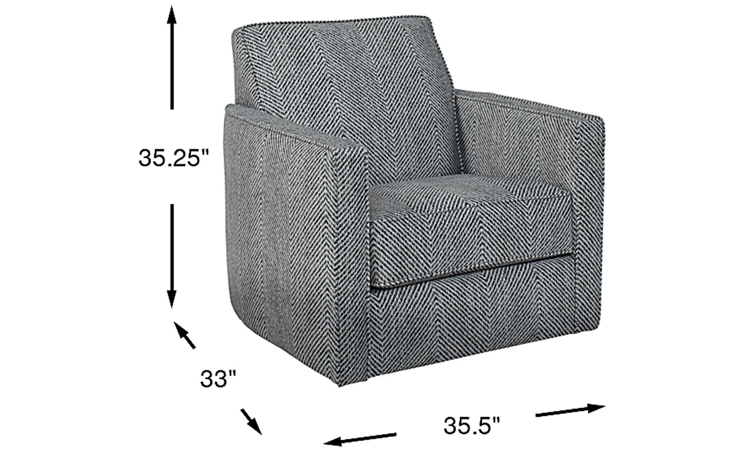 Cozy and contemporary, the Carole Court swivel chair offers comfort without skimping on style. Upholstered in gray woven fabric with a subtle herringbone pattern, this swivel chair boasts clean lines, welted seams and sleek track arms. 100% Polyester.