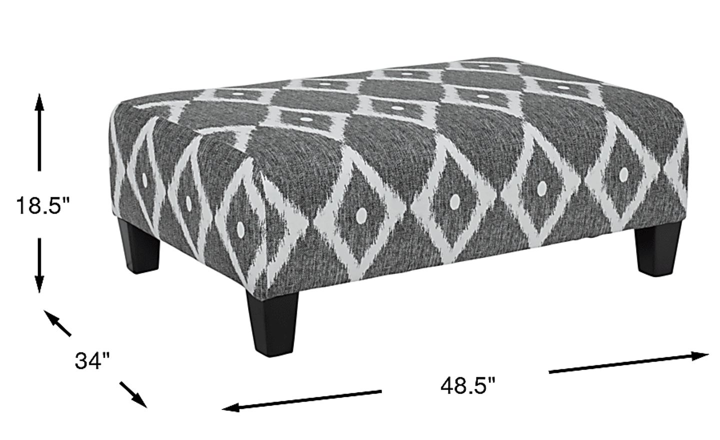 A versatile addition to any room, the chic Carole Court cocktail ottoman offers a stylish seating solution and footrest rolled into one. Upholstered in woven fabric featuring a fashionable contemporary pattern in gray and white, this ottoman makes for a great alternative to a traditional cocktail table. Useful as additional seating or a footrest, this ottoman enhances your living space. 100% Polyester.