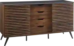 Channel an air of a sophisticated mystery in your living room with this Carovilli urban sideboard. All your guests will admire the two unique slat doors that hide games for the party, dishes for dinner, or the next clue. They will expect the butler to come around the corner when you open one of the four attractive drawers with cutout handles to reveal drinks. They may even forget why they came when they notice the retro, steel angled legs and two adjustable shelves. And you can just sit back and enjoy the high-end party with a smirk knowing your secret to excellent modern home decor is safe with us. Place in the kitchen, dining room, living room, or bedroom to fit your refined storage needs. Customer assembly is required.
