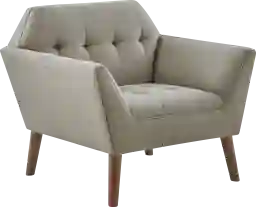 Accent your living area with the mid-century allure of the Carrere lounge chair. The tight back and seat offers extra plush comfortable seating and features a clean tailored look accented with button tufting details. Textured upholstery and a pecan finish on the tapered wood legs gives this lounge chair a warm contrast and alluring appeal. Customer assembly is required.