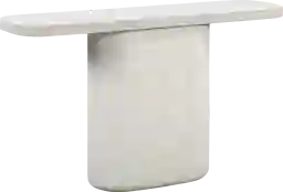 In open-concept homes where the sofa "floats" in the center of the room, this table serves as a structural anchor. By placing it behind the couch, you create a clear visual boundary between the living and dining areas. Its soft, rounded form and 55-inch length provide a "finished" look to the back of the sofa, helping to organize the layout without the need for walls.
