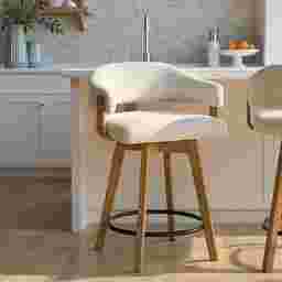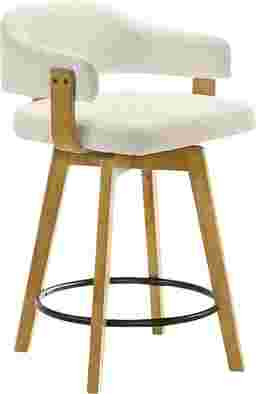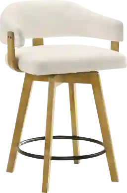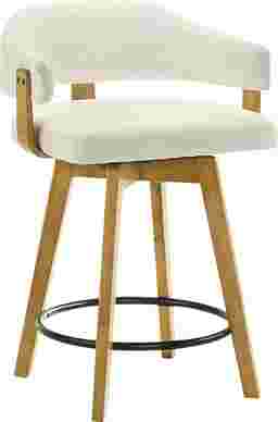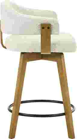 The Carsonee counter stool combines contemporary comfort with a warm, inviting aesthetic that fits seamlessly into modern, coastal, and transitional interiors. Its curved open-back design, tactile white boucle upholstery, and smooth wood finish create an elegant yet approachable look that enhances any kitchen island, bar, or counter space. Crafted with attention to both style and function, each stool features a durable solid natural wood frame finished in a rich tone that highlights the natural grain of the wood. The performance boucle fabric upholstery introduces a layer of soft texture and warmth, designed to withstand everyday wear while maintaining its beauty over time. Its cloud-like handfeel brings luxury into daily living while still offering the practicality needed for high-traffic seating areas. The low open-back design supports a relaxed posture while keeping sightlines open, making the space feel airy and uncluttered. A generously cushioned seat ensures comfort for extended