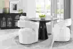 it gets dirty super quick. don't recommend if you have kids. difficult to found covers or protectors online because the way the chair it is. nice color, soft, comfortable but I REALLY regrated it or I wish they can give more the just 2 days to return it or be able to exchange for other dinning set. the delivery guys were so helpful and nice.