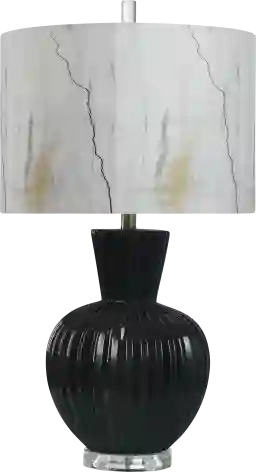 The Casdy Black Lamp invites a fresh and contemporary vibe into your living room or office space. Its ceramic fixture is adorned with a unique print artwork on the drum-shaped fabric shade, making it a stylish focal point in any room. Whether it's for your bedside table in the bedroom or as an accent piece in the entryway, this lamp will certainly elevate the aesthetics of your home. Partial assembly may be required.