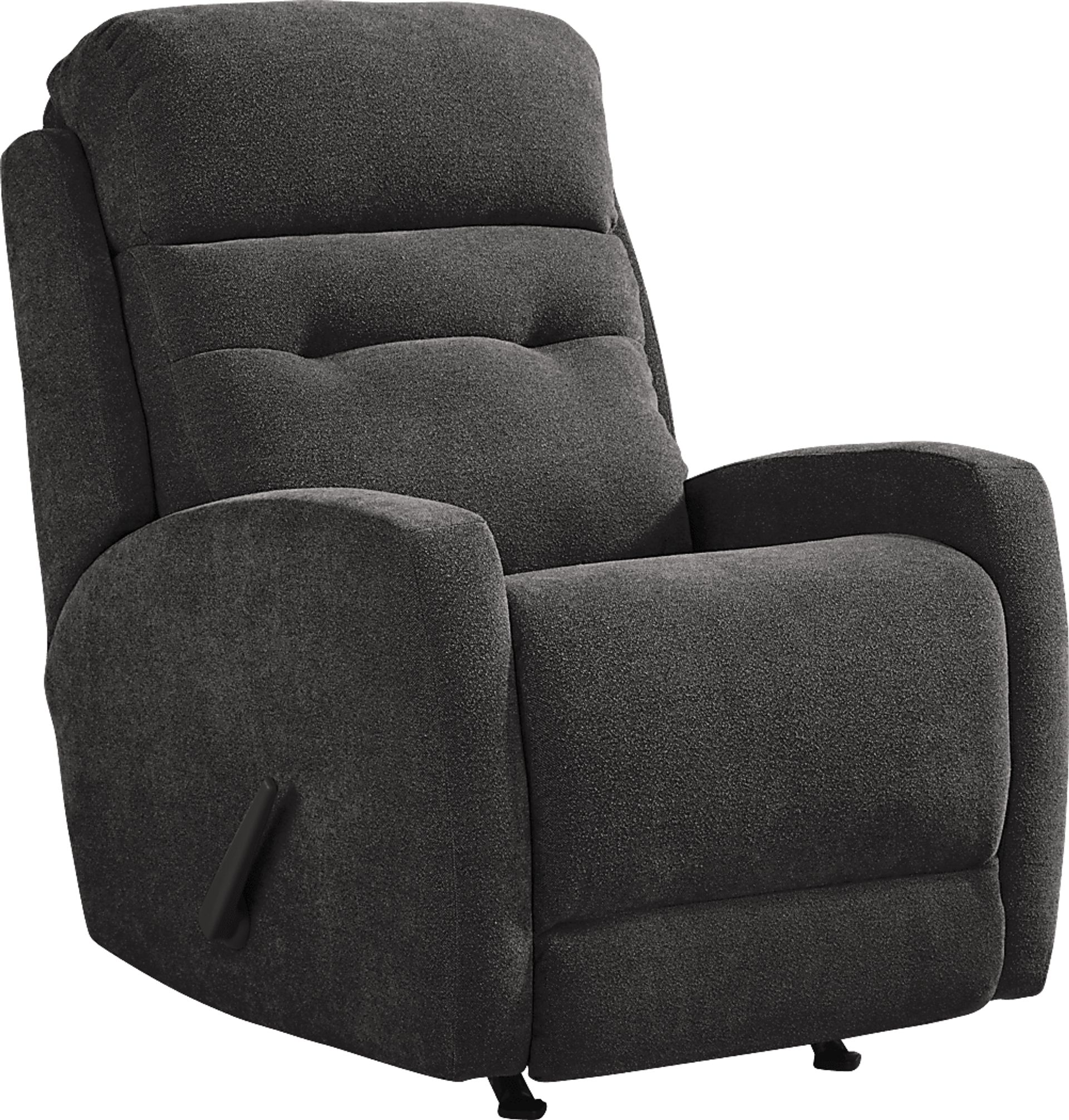 Boasting a chic, contemporary design, the Cason Lane rocker recliner indulges you with comfort and connectivity. Manually recline the chaise-style footrest for instant relaxation. This chair's soft chenille upholstery features a dark gray hue, while tufting detail adds a touch of style. Plus, the rocking function allows you to move back and forth as you read, converse or watch TV. Upholstery: 100% Polyester