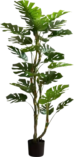 To achieve a lifelike appearance, this floor plant features "real touch" technology on its 25 large green leaves, which mimics the texture and sheen of a live tropical plant. When styling, the multi-trunk design adds essential structural depth that avoids the uniform, "plastic" look often found in lower-quality alternatives. Additionally, the plant comes cemented in a weighted black pot, providing a stable and authentic foundation for the display.