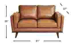 Bring supple and stylish seating to your living room with the Cassina Court loveseat. Upholstered in exquisite top grain leather where the body touches, this caramel-colored loveseat imbues any space with contemporary elegance. Double track arms and welted box seats and back cushions offer striking style details. Tapered cylindrical wooden legs provide the perfect final touch. Top grain leather where the body touches and polyurethane fabric sides and backs.