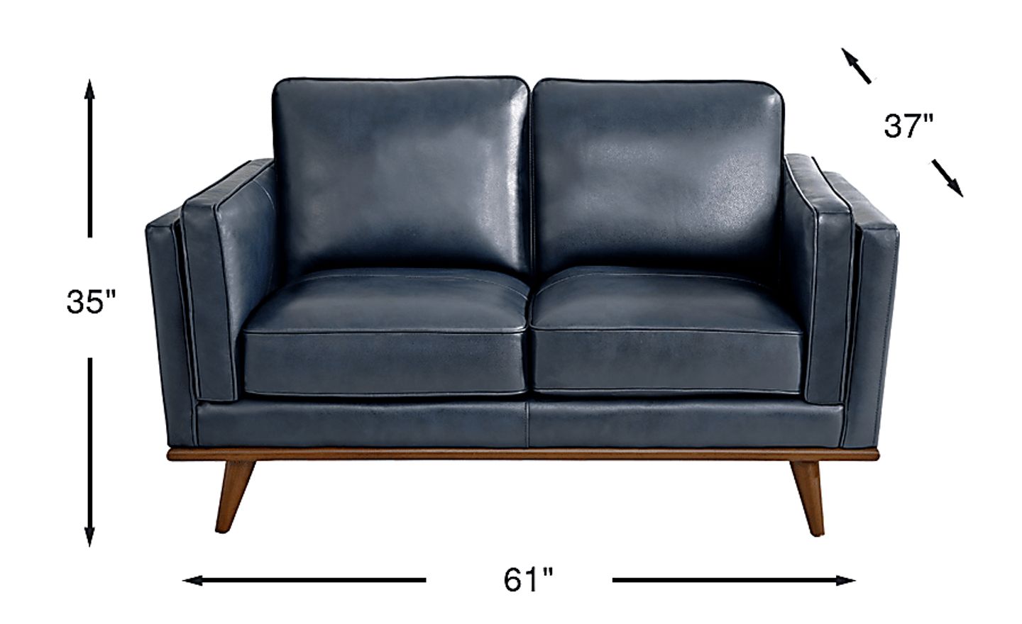 Bring supple and stylish seating to your living room with the Cassina Court loveseat. Upholstered in exquisite top grain leather where the body touches, this navy-colored loveseat imbues any space with contemporary elegance. Double track arms and welted box seats and back cushions offer striking style details. Tapered cylindrical wooden legs provide the perfect final touch. Top grain leather where the body touches and polyurethane fabric sides and backs.