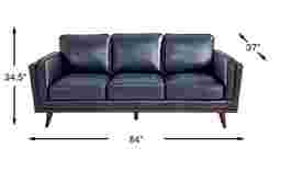 Bring supple and stylish seating to your living room with the Cassina Way sofa. Upholstered in exquisite top grain leather where the body touches, this navy-colored sofa imbues any space with contemporary elegance. Double track arms and welted box seats and back cushions offer striking style details. Tapered cylindrical wooden legs provide the perfect final touch. Upholstery: Top grain leather where the body touches and polyurethane fabric sides and backs. Leather is a durable, low maintenance product, however, general regular maintenance is necessary. To keep your leather clean, vacuum it regularly, removing any dust, and clean it with water and a mild non-detergent soap.