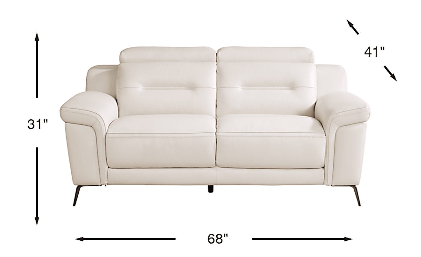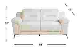 Park Avenue luxury and refinement comes home with the in-the-now Castella loveseat. Upholstered in rich, opulent top grain ivory leather where the body touches, its high resiliency seat webbing and attached seat cushion deliver immeasurable comfort year after year. The stylish flair arms are accompanied by padded outside arms and back and tall, tapered legs for the final flourish of contemporary opulent living. Upholstery: Top grain leather where the body touches and polyurethane fabric sides and backs.