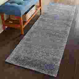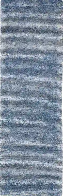 Absolutely. Using a striped pattern is a classic design strategy to visually manipulate space. The horizontal or vertical lines of a striped rug can guide the eye along the length of a hallway, making the area feel more expansive and elongated. This "Simple" style rug, with its textured blue and ivory tones, adds visual depth without cluttering the space, making it an ideal choice for creating a breezy, open feel in tighter urban layouts.