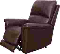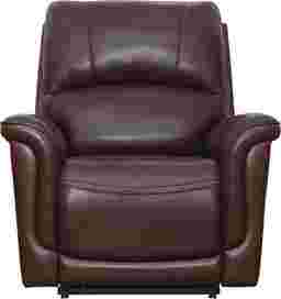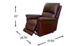 Enjoy the sumptuous feel and premium comfort-enhancing features of the Castmore triple power recliner. Boasting supple brown padded leather where the body touches, this luxurious recliner showcases triple power reclining mechanisms to independently raise and lower the headrest, lumbar support and chaise footrest with the touch of a button. When ready to rise, the attached remote wand has a reset button that returns you to an upright position before once again lifting you to standing. Contemporary design makes it an ideal choice for those with modern style. Plus, a USB port built into the recliner allows you to conveniently charge devices without ever leaving your seat. Upholstery: top grain leather where the body touches with vinyl sides and back.