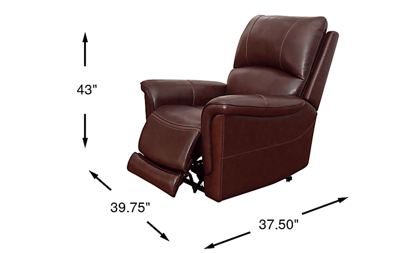 With a width of 37.5 inches and a contemporary design, this recliner is scaled to provide a premium, luxurious experience without the excessive bulk often found in traditional recliners. Its clean lines and sophisticated brown leather finish allow it to blend seamlessly into modern urban apartments or updated suburban living spaces, offering high-end functionality in a more streamlined silhouette.